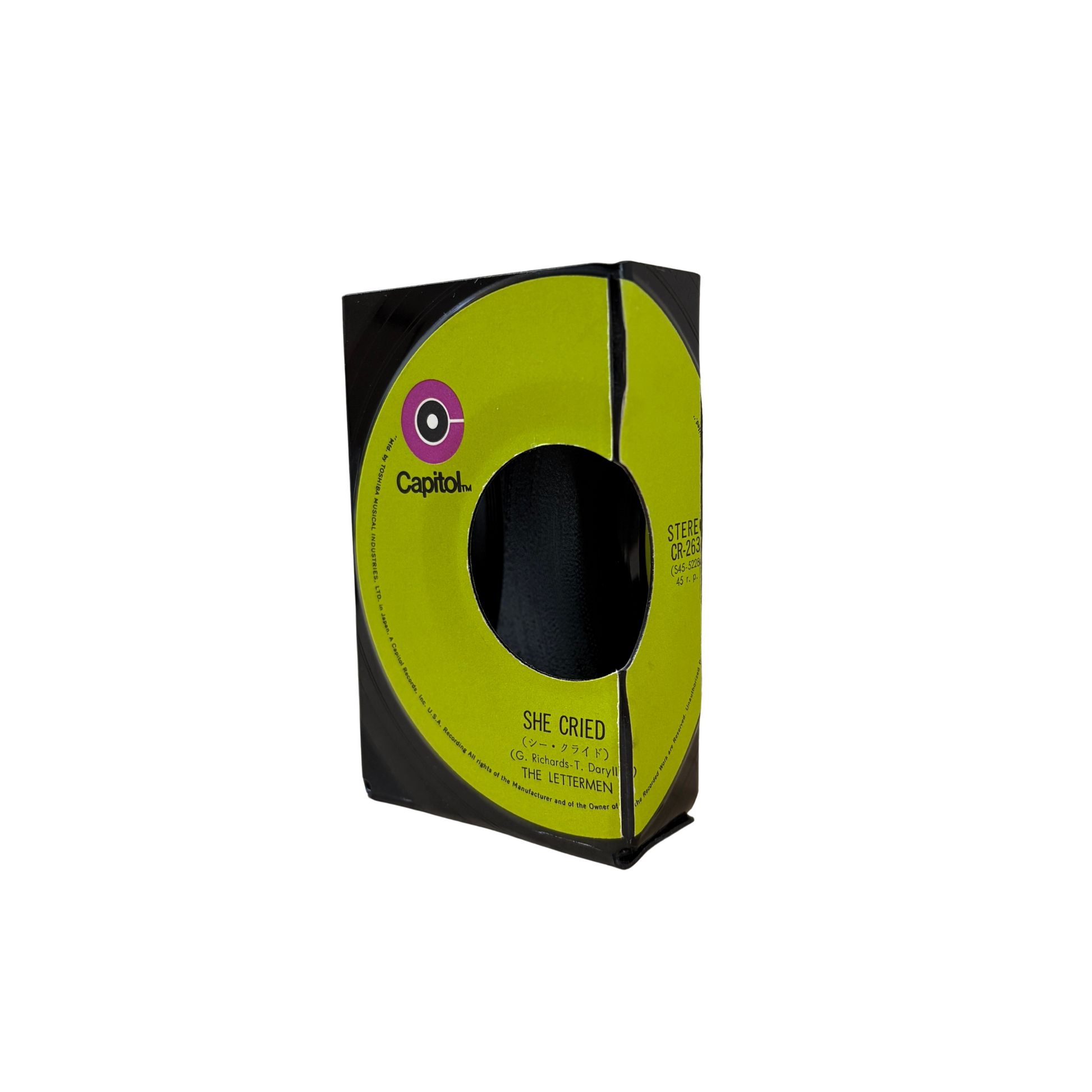 EPレコード特有の穴でスライドさせ取り出しする仕様。